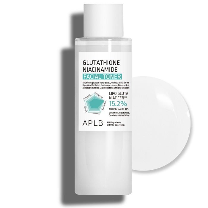 APLB Glutathione Niacinamide Facial Toner este un toner multifuncțional, formulat pentru hidratare profundă, calmare și revitalizare. Combinația de glutation, niacinamidă și apă de frunze de Centella Asiatica ajută la uniformizarea tonului pielii și la reducerea semnelor de oboseală sau pigmentare. Textura sa lejeră se absoarbe rapid, fără a lăsa peliculă grasă, pregătind tenul pentru pașii următori din rutina de îngrijire.