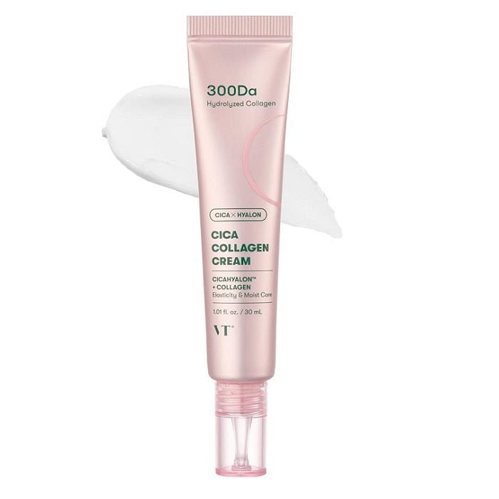VT Cica Collagen Cream este o cremă hidratantă pentru față cu textură lejeră tip gel-cremă, creată pentru a hidrata intens, calma și susține fermitatea pielii. Formula combină ingrediente ce îmbunătățesc elasticitatea, fortifică bariera cutanată și reduc disconfortul, lăsând pielea confortabilă, netedă și mai tânără la aspect. Crema este potrivită atât ca ultim pas în rutina de îngrijire, cât și ca bază înainte de machiaj.